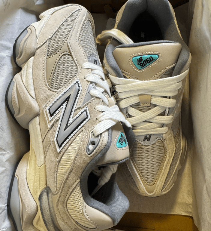 The New Balance 9060 ‘Sea Salt’ showcases neutral tones on a lifestyle runner that takes design cues from classic 99X models, mingled with the visible tech aesthetic of running shoes from the Y2K era. The upper combines sand-colored mesh with tonal suede overlays and mismatched ‘N’ logos, rendered in matte silver on the lateral side and white embroidery on the opposite side. Atop the tongue, an NB 9060 logo is inspired by the original 991 lace jewel. The sneaker rides on a sculpted ABZORB midsole, enhanced with SBS cushioning and a translucent CR device at the heel. Underfoot, the diamond outsole pattern is borrowed from the 860.