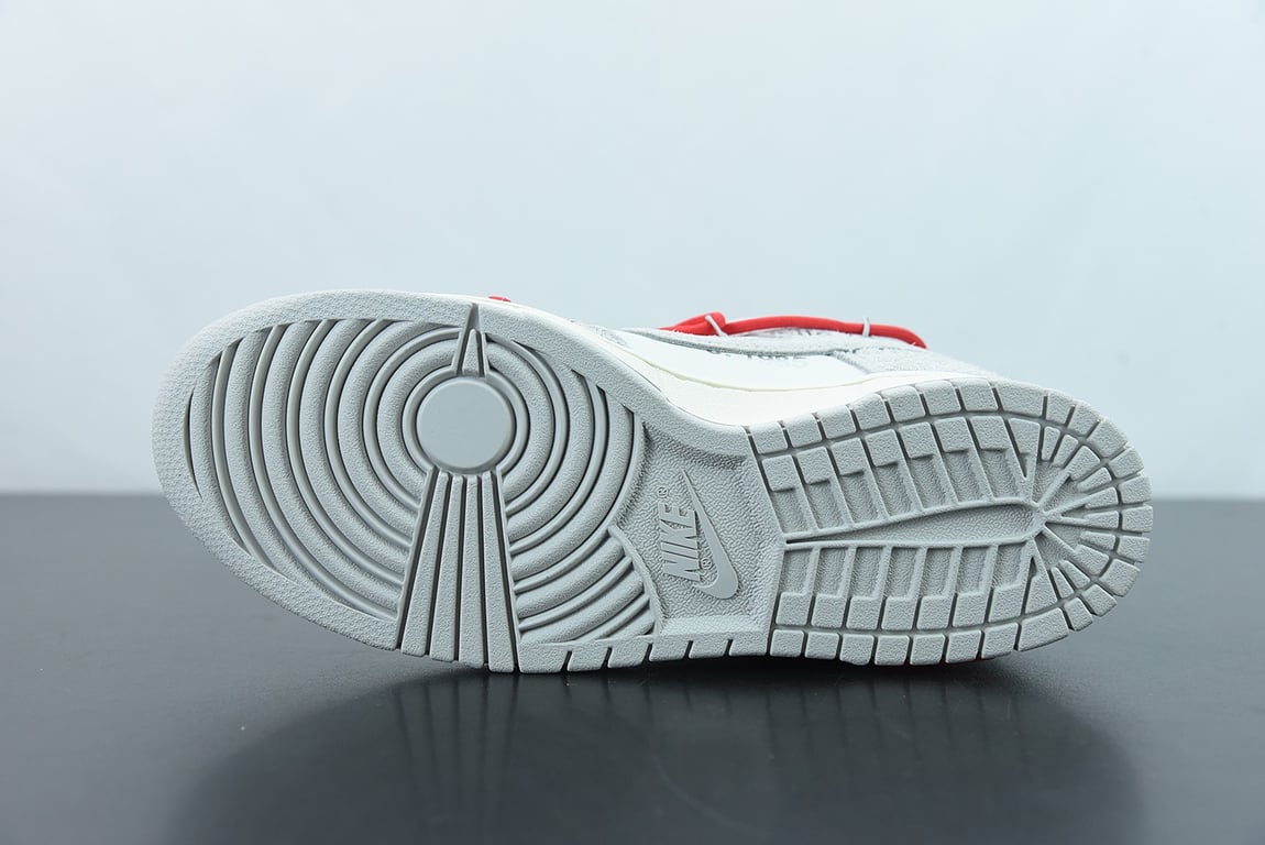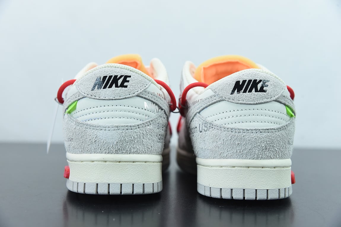 This Off-White x Nike Dunk Low is taken from the ‘Dear Summer’ collection, a sprawling follow-up to Virgil Abloh’s first Nike Dunk collaboration from 2019. The low-top makes use of a white leather upper with soft grey suede overlays, along with Virgil Abloh’s calling-card flourishes, which include a plastic zip tie and printed Helvetica text. Contrasting pops of color arrive via the sneaker’s secondary lacing system, zip-tie, an exposed-foam tongue and a rectangular tab affixed to the Swoosh. Limited to fifty pairs, a ’40 of 50’ badge is affixed on the lateral midsole.