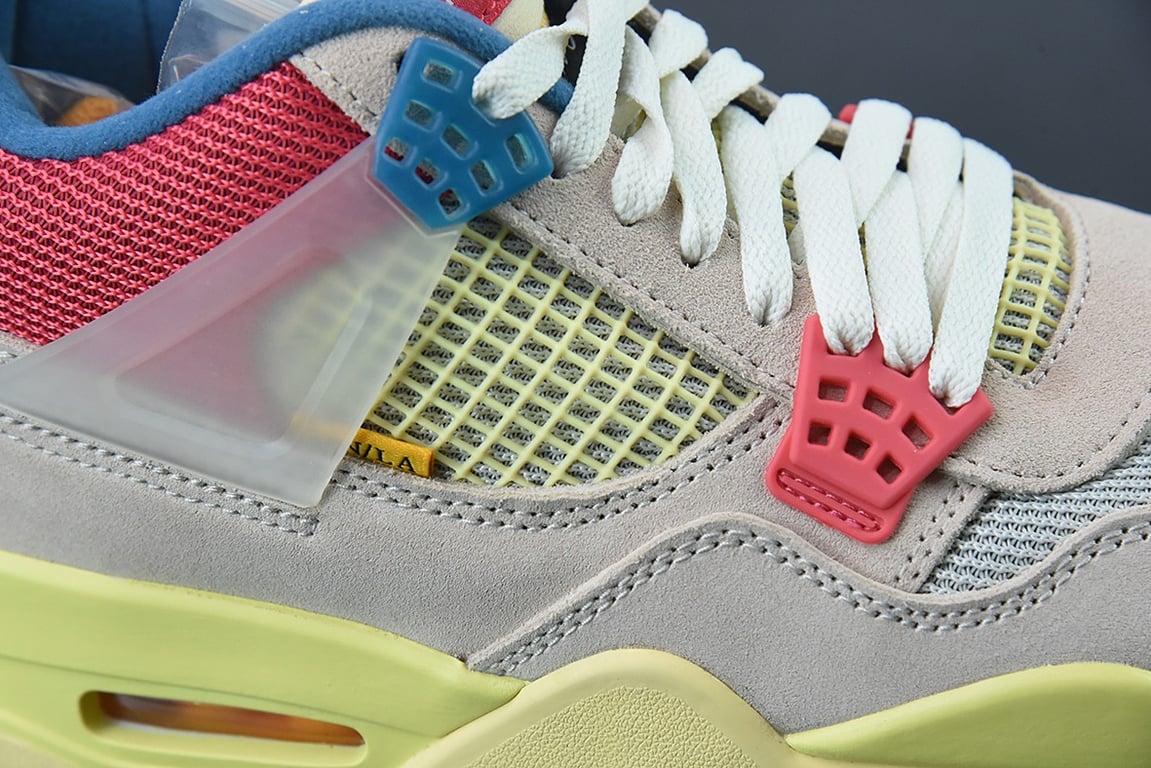 The sequel to the creative partners’ Air Jordan 1 collaboration from 2018, the Union LA x Air Jordan 4 Retro ‘Guava Ice’ delivers a vibrant take on the classic silhouette. The upper combines soft pink suede with breathable mesh on the collar and toe box. Semi-translucent TPU wings provide structural support, taking cues from an original Tinker Hatfield sketch. Additional branding hits include a yellow Union tab on the lateral quarter panel, Nike Air on the back heel and a woven Air Jordan tag atop the folded-over tongue.