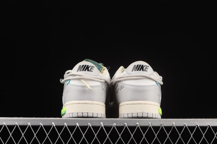 This Off-White x Nike Dunk Low is taken from the ‘Dear Summer’ collection, a sprawling follow-up to Virgil Abloh’s first Nike Dunk collaboration from 2019. The low-top makes use of a white leather upper with soft grey canvas overlays, along with Virgil Abloh’s calling-card flourishes, which include a plastic zip tie and printed Helvetica text. Contrasting pops of color arrive via the sneaker’s secondary lacing system, zip-tie, an exposed-foam tongue and a rectangular tab affixed to the Swoosh. Limited to fifty pairs, a ’42 of 50’ badge is affixed on the lateral midsole.