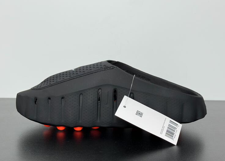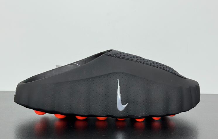 The Nike Mind 001 'Black Chrome' enhances your pregame routine with a revolutionary approach to footwear. Developed by the Nike Mind Science Department, this mule features a unique outsole with 22 nodes that move independently to activate sensory areas of the brain. The design is intended to help you stay present and connected to your surroundings before the big game. Dressed in a sleek Black and Chrome colorway with Hyper Crimson accents, the shoe utilizes a soft foam midsole for robust cushioning. A breathable knit tongue and perforated details ensure comfort, while the slip-on design allows for easy wear.
